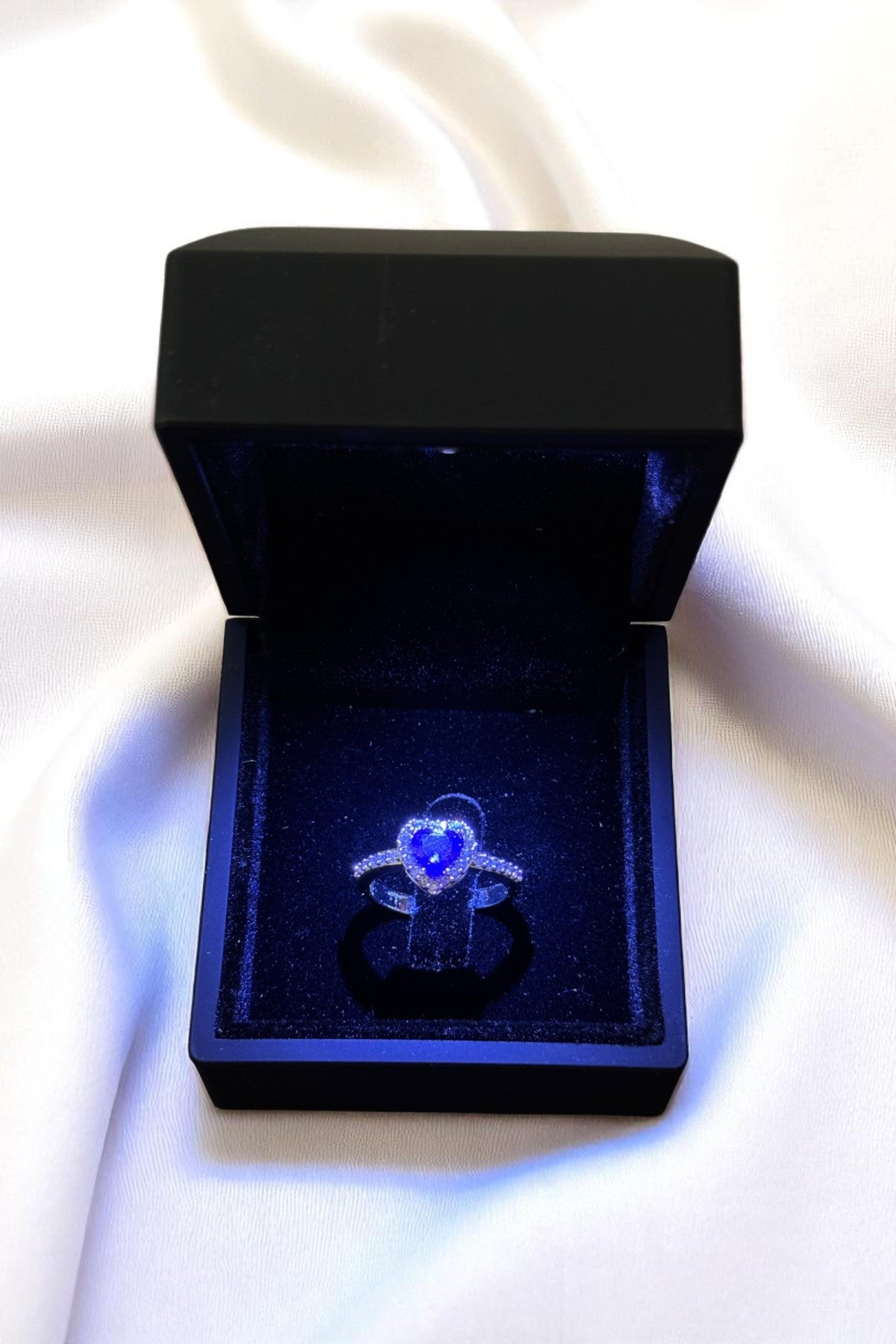 Mor Kalpli Işıklı Kutuda Çelik Ciddi İlişki Yüzüğü – Sevgiliye Özel Hediye